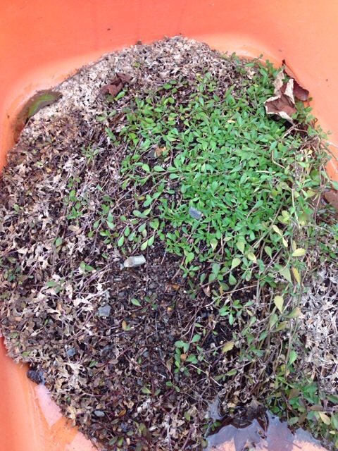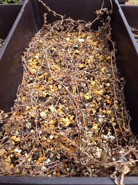 病巣部を切り取って、ベンレート水和剤を散布し別の場所で保管してたクラピア。