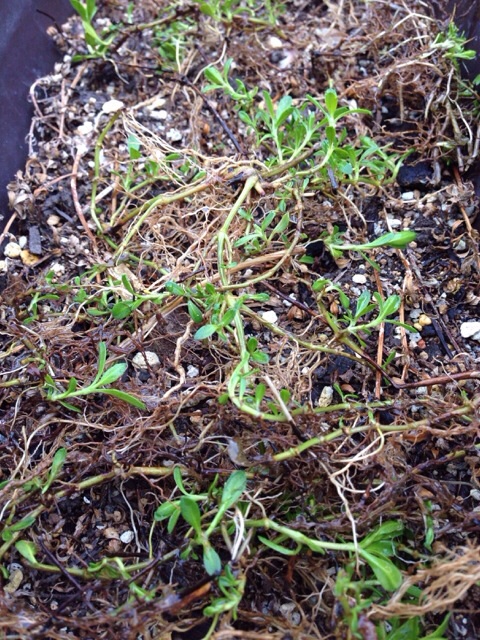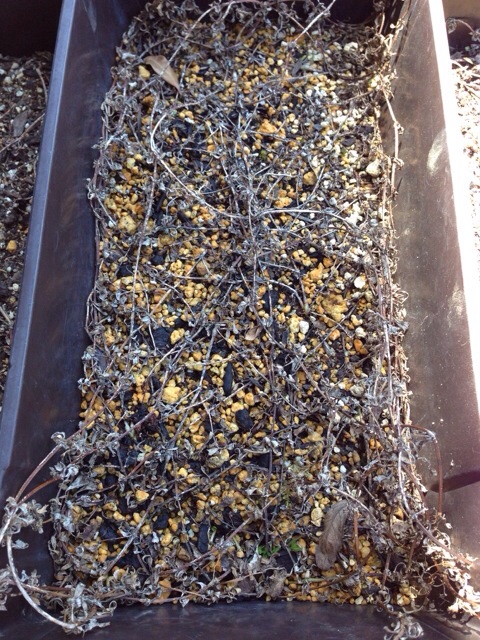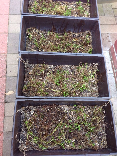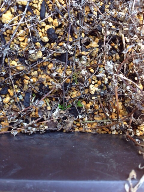 そこで、車庫にて越冬を試みた「失敗クラピア」を再度確認。