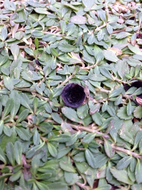 何だか黒い変なやつがクラピアの下から生えてきてる。