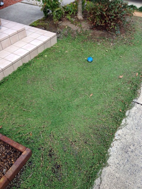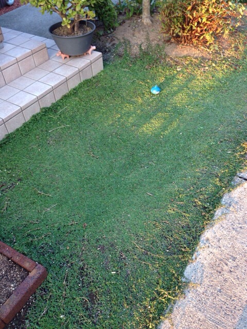 クラピアの色的に、コンクリ右下辺りが若干心配な雰囲気。(少し様子を見る)