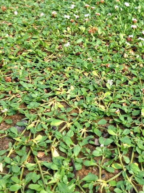 地上に植えた場合、植栽して根が活着するまでの期間(10日~14日程度)灌水が必要ですが、活着後は、保水性の悪い真砂土や砂地などを除き灌水は不要です。クラピアが繁茂した後は、真夏で2週間雨が一切降らなくても灌水は 不要です。