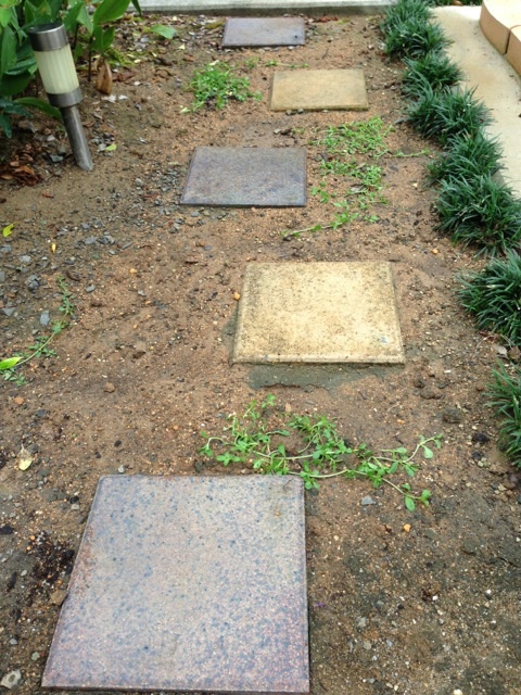 クラピアの存在を知らない時に砂利を除去して防草シートを敷いた場所。タマリュウとかも。