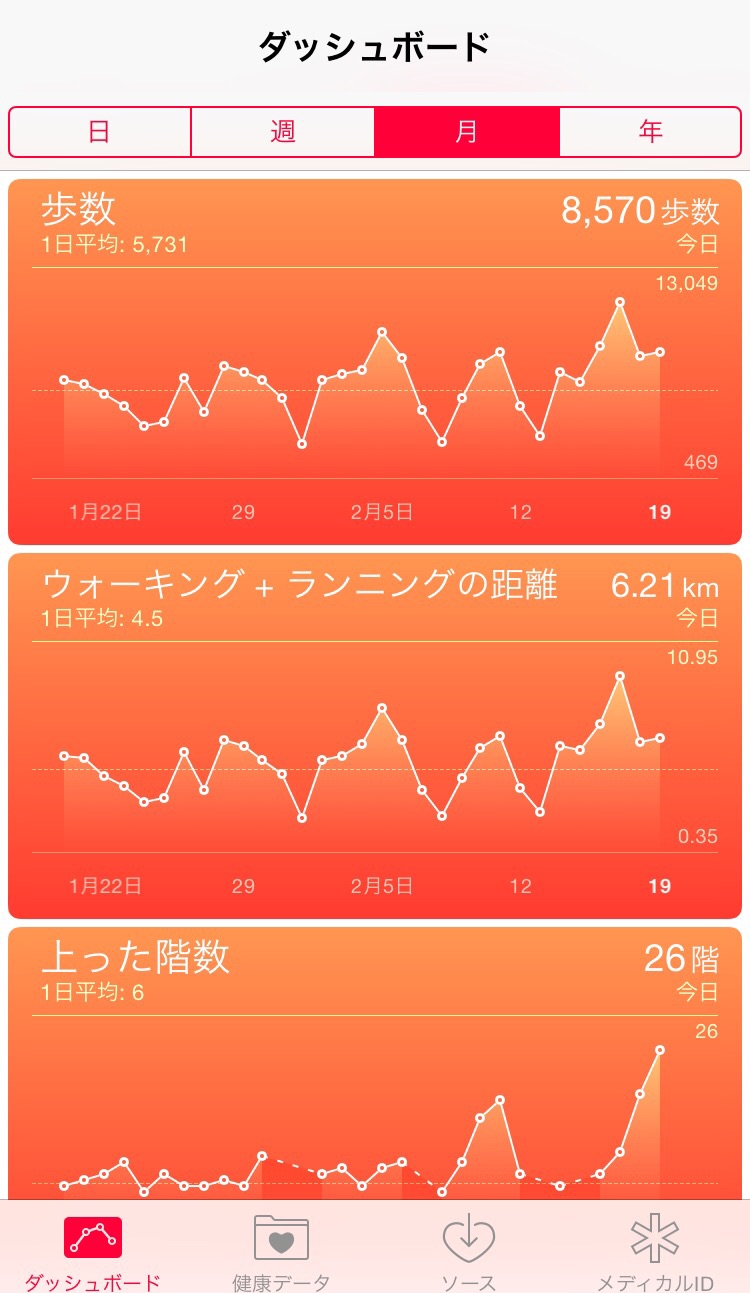 残念ながらヘルスケアではそういった管理はできない。(オールタイムの記録なので、自分の意思が見えない)