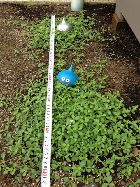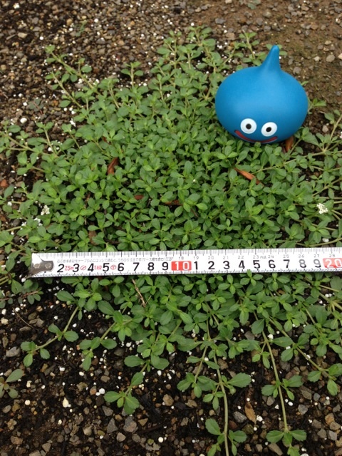 手前の2つが繋がりそう。手前の左のクラピアは先週から尿素+ハイポネックスを施肥。やっぱりこの施肥は効果があると思う。これにて液肥実験は終了し全クラピアに施肥する。